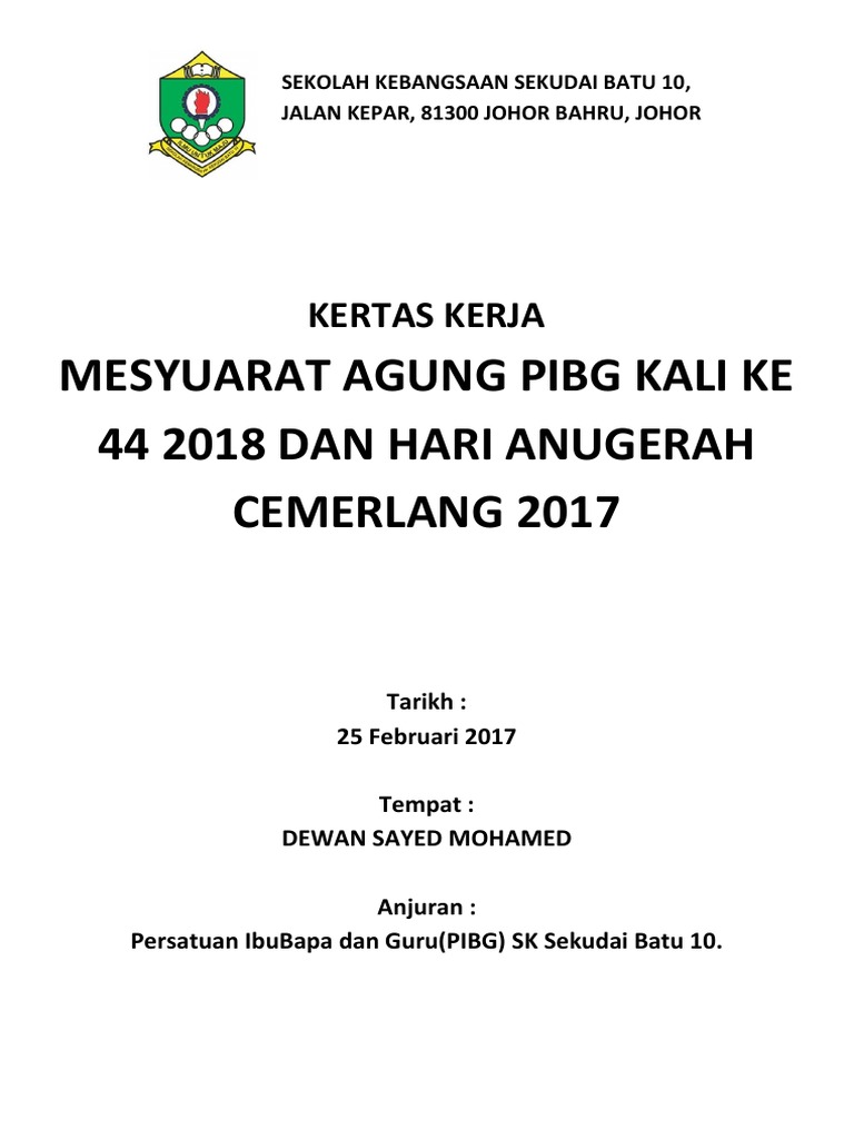 Kertas Kerja Mesyuarat Agung Pibg Dan Anugerah Cemerlang 2018 Pdf